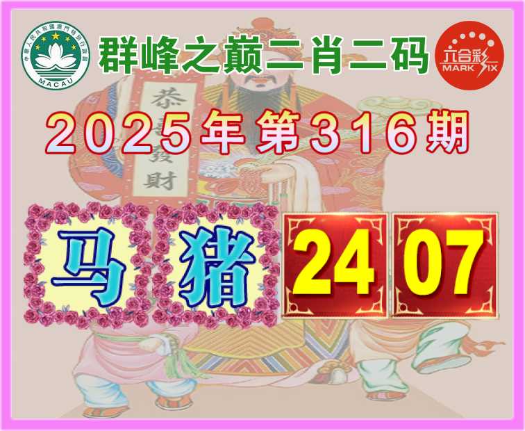 316期:【群峰之巅】 二肖二码【马猪】【24.07】开:马24准