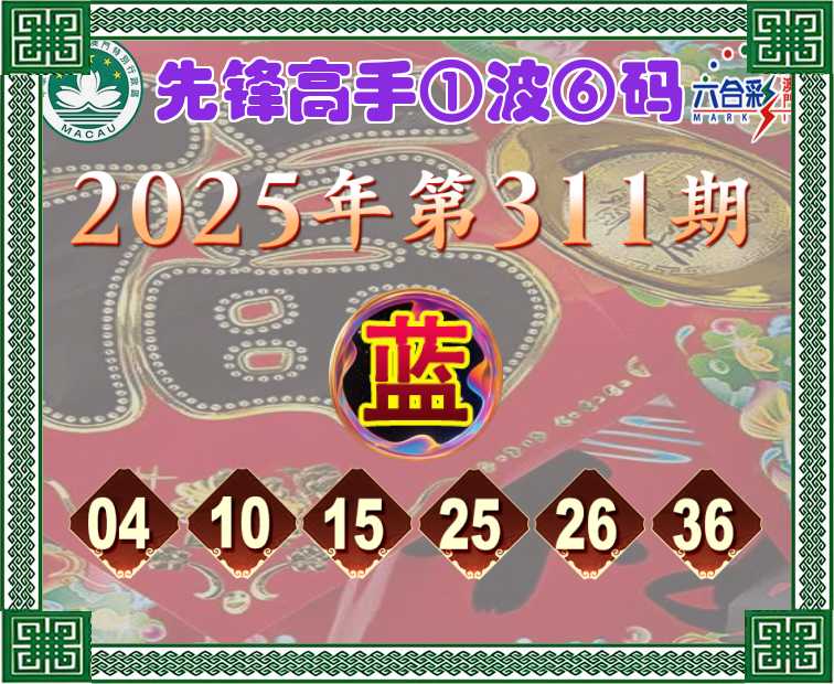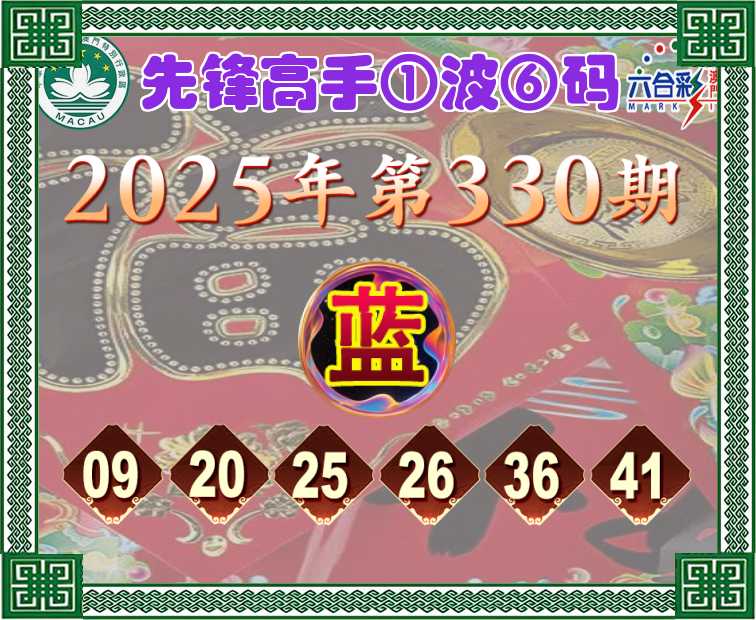 330期:【先锋高手】 ①波⑥码【蓝波】开:马36准