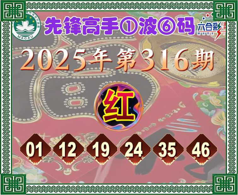 316期:【先锋高手】 ①波⑥码【红波】开:马24准