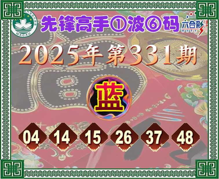 331期:【先锋高手】 ①波⑥码【蓝波】开:龙26准