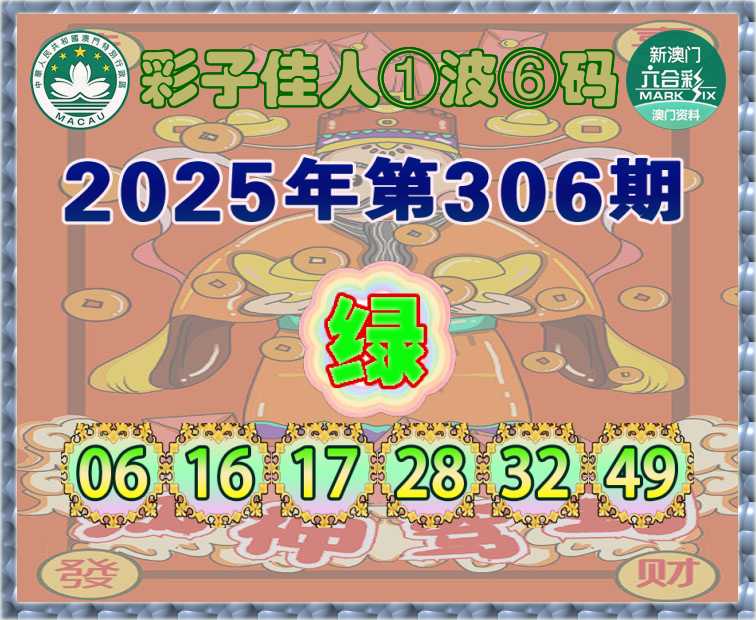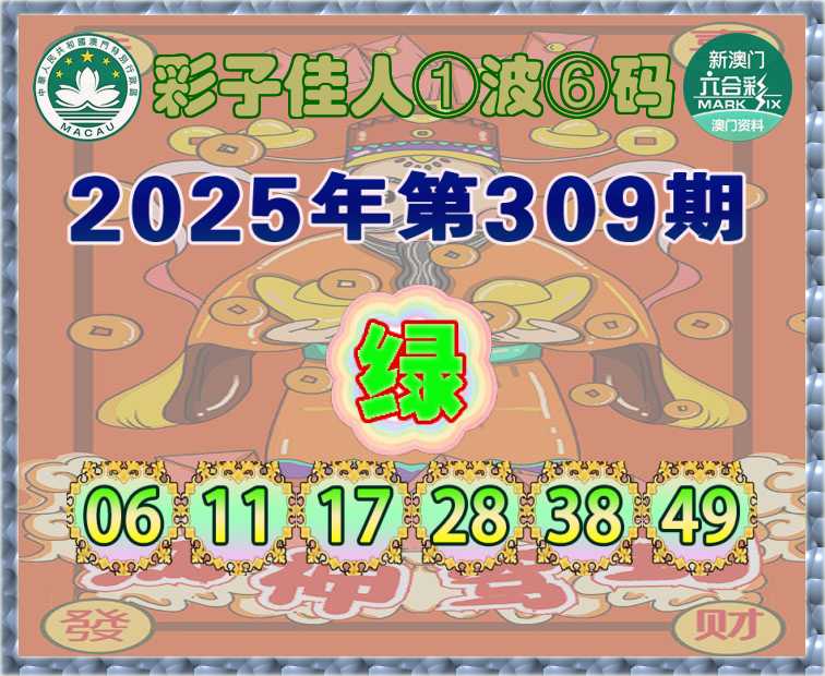 309期:『彩子佳人』 ①波⑥码【绿波】开:鼠06准