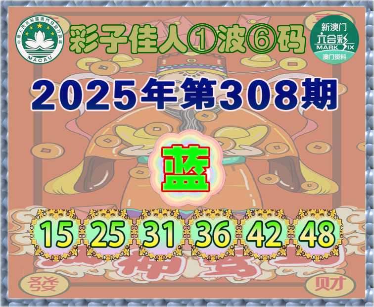 308期:『彩子佳人』 ①波⑥码【蓝波】开:兔39错