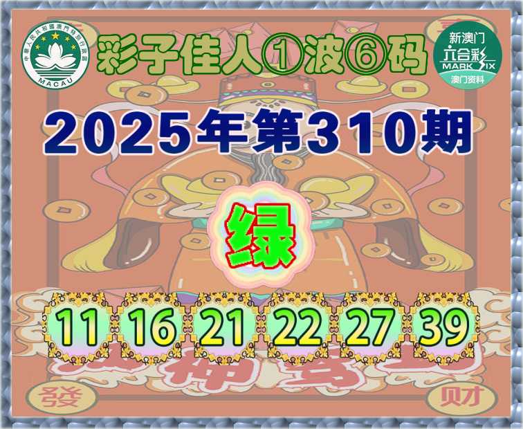 310期:『彩子佳人』 ①波⑥码【绿波】开:虎16准