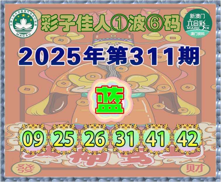 311期:『彩子佳人』 ①波⑥码【蓝波】开:蛇37准