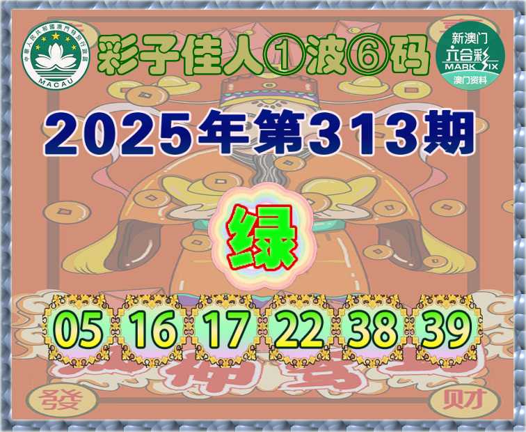 313期:『彩子佳人』 ①波⑥码【绿波】开:龙38准