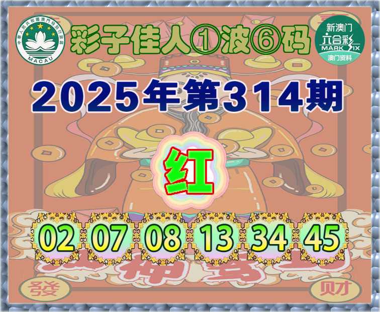 314期:『彩子佳人』 ①波⑥码【红波】开:羊23准