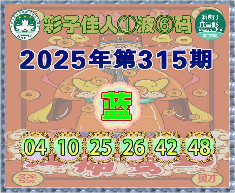 315期:『彩子佳人』 ①波⑥码【蓝波】开:虎04准