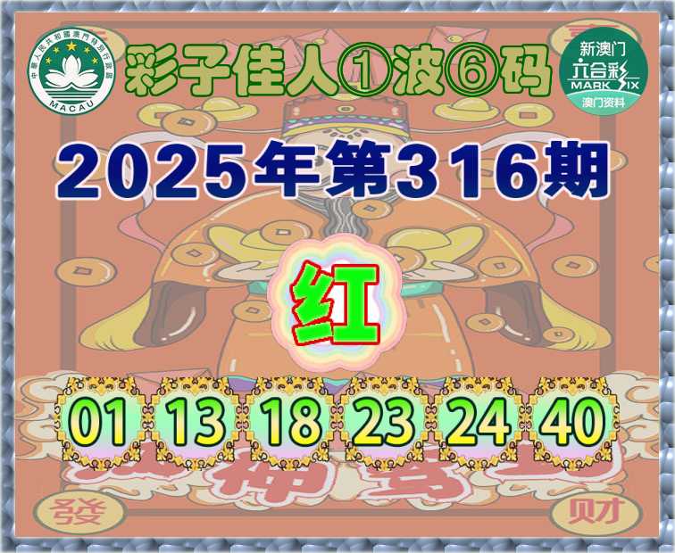316期:『彩子佳人』 ①波⑥码【红波】开:马24准