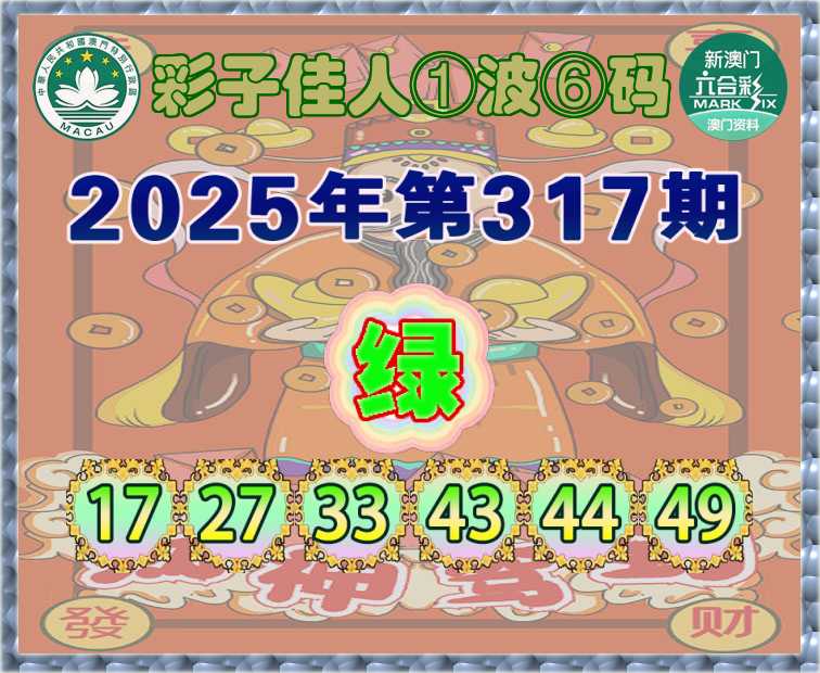 317期:『彩子佳人』 ①波⑥码【绿波】开:鼠18错