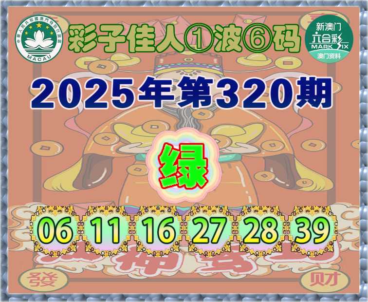 320期:『彩子佳人』 ①波⑥码【绿波】开:虎28准