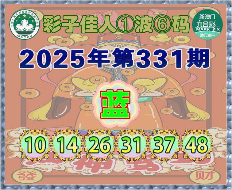 331期:『彩子佳人』 ①波⑥码【蓝波】开:龙26准