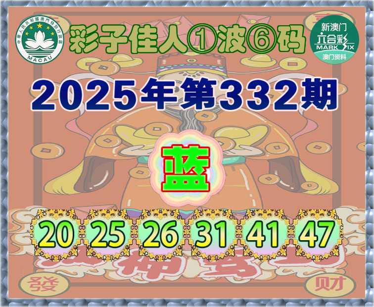 332期:『彩子佳人』 ①波⑥码【蓝波】开:龙26准