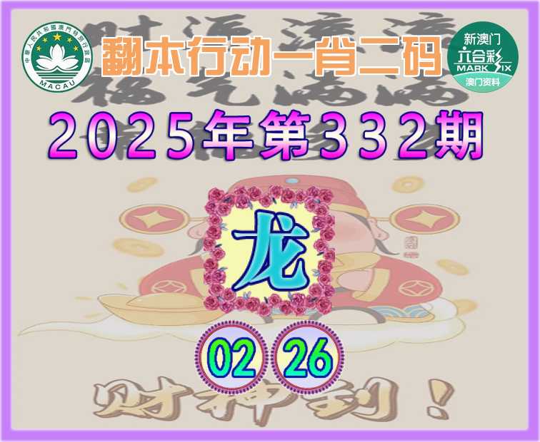 332期:《翻本行动》 一肖二码【龙】【02.26】开:龙26准
