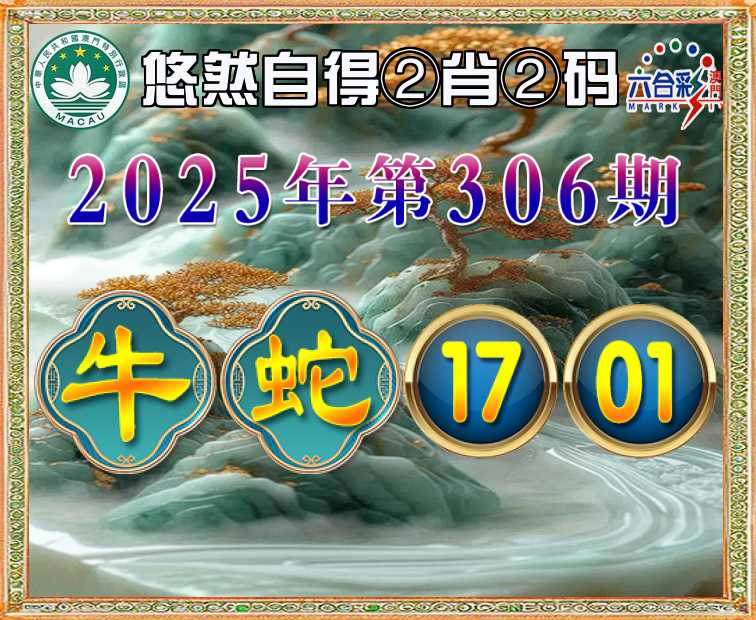 306期:〖悠然自得〗 ②肖②码【牛蛇】【17.01】开:牛17准