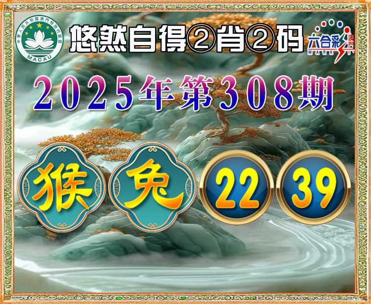 308期:〖悠然自得〗 ②肖②码【猴兔】【22.39】开:兔39准