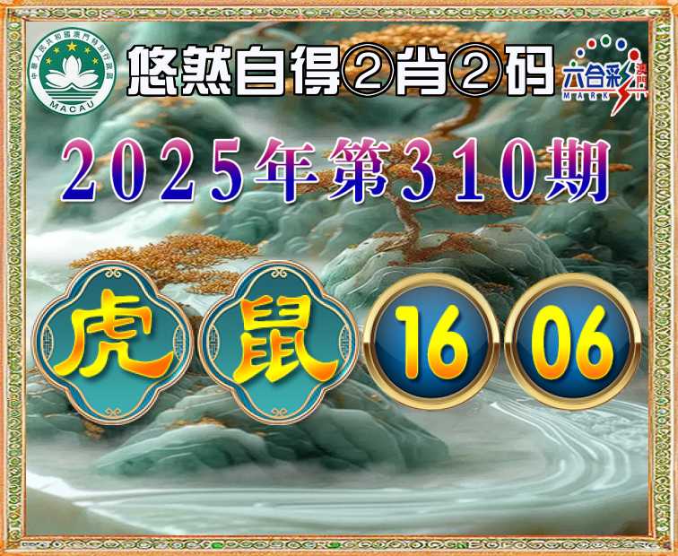 310期:〖悠然自得〗 ②肖②码【虎鼠】【16.06】开:虎16准