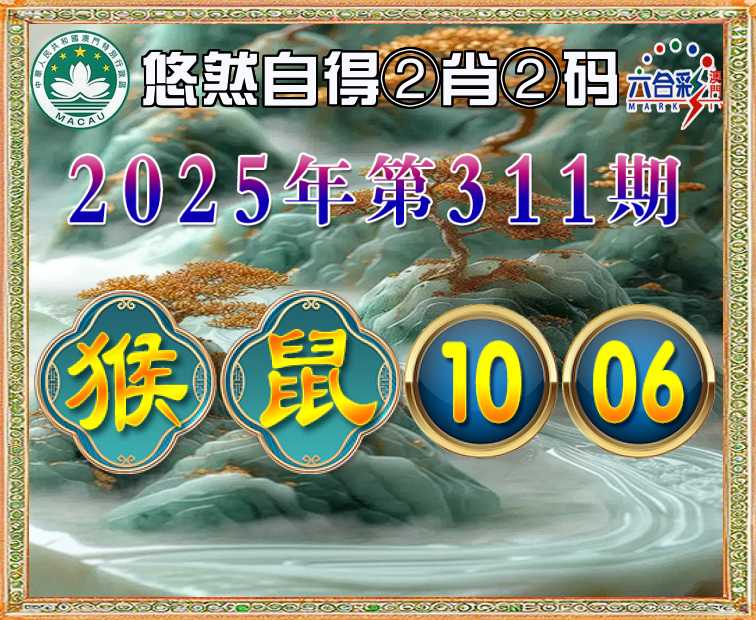 311期:〖悠然自得〗 ②肖②码【猴鼠】【10.06】开:蛇37错