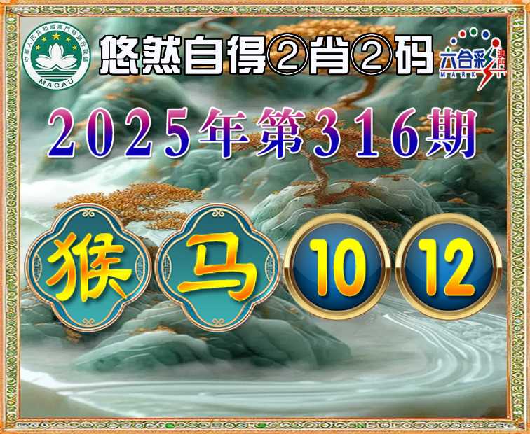 316期:〖悠然自得〗 ②肖②码【猴马】【10.12】开:马24准