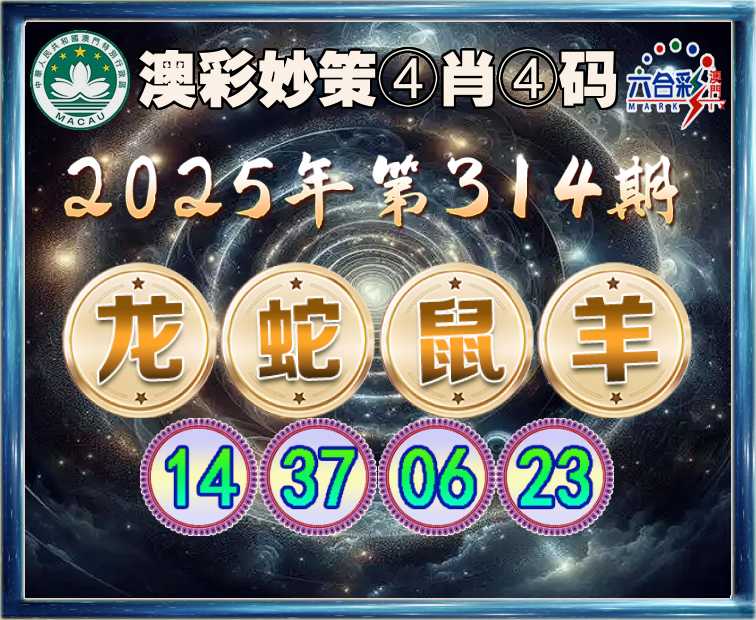 314期:【澳彩妙策】 ④肖④码【龙蛇鼠羊】【14.37.06.23】开:羊23准