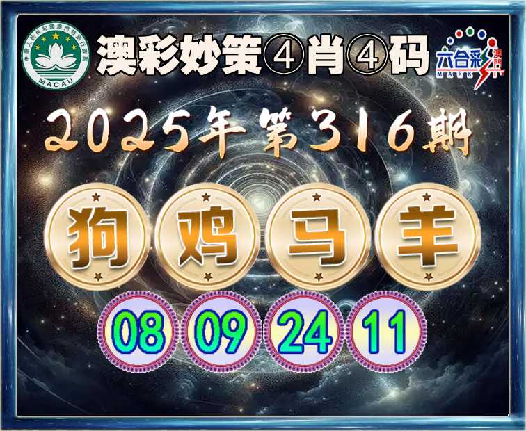 316期:【澳彩妙策】 ④肖④码【狗鸡马羊】【08.09.24.11】开:马24准