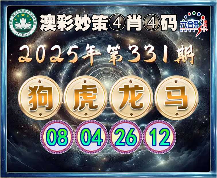 331期:【澳彩妙策】 ④肖④码【狗虎龙马】【08.04.26.12】开:龙26准