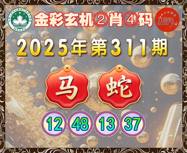 311期: 『金彩玄机』 ②肖④码【马蛇】【12.48.13.37】开:蛇37准