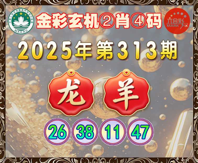 313期: 『金彩玄机』 ②肖④码【龙羊】【26.38.11.47】开:龙38准