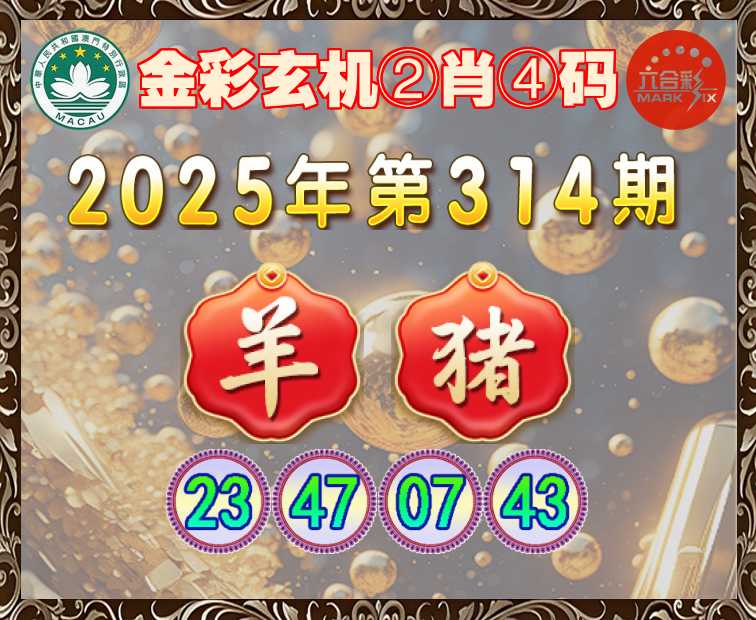 314期: 『金彩玄机』 ②肖④码【羊猪】【23.47.07.43】开:羊23准