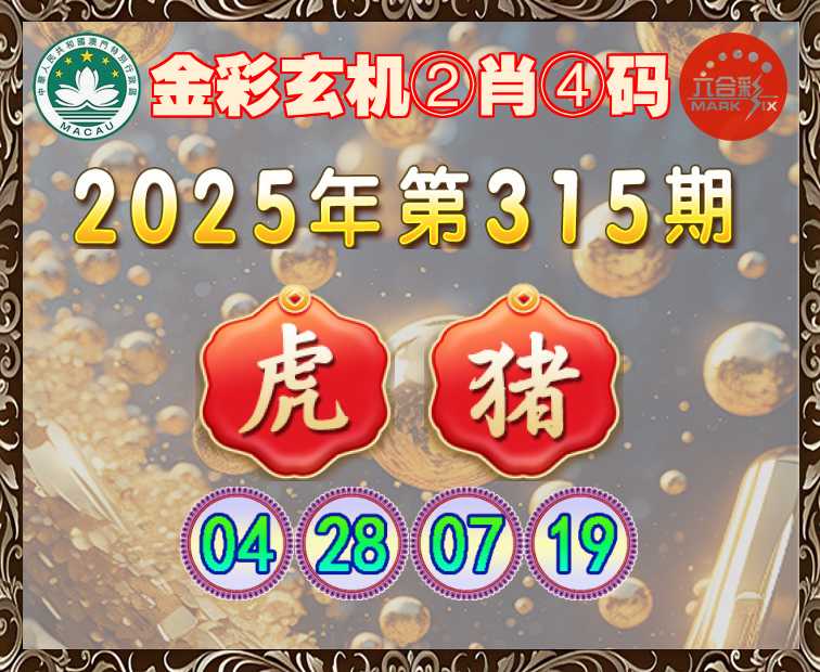 315期: 『金彩玄机』 ②肖④码【虎猪】【04.28.07.19】开:虎04准