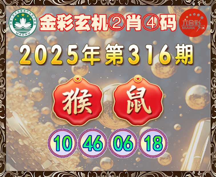 316期: 『金彩玄机』 ②肖④码【猴鼠】【10.46.06.18】开:马24错