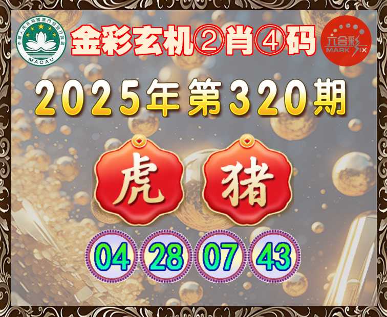 320期: 『金彩玄机』 ②肖④码【虎猪】【04.28.07.43】开:虎28准