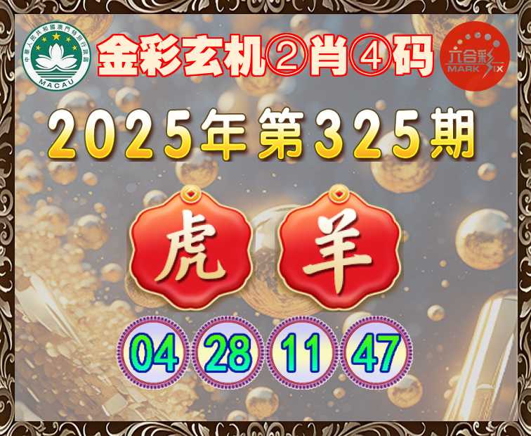 325期: 『金彩玄机』 ②肖④码【虎羊】【04.28.11.47】开:虎04准