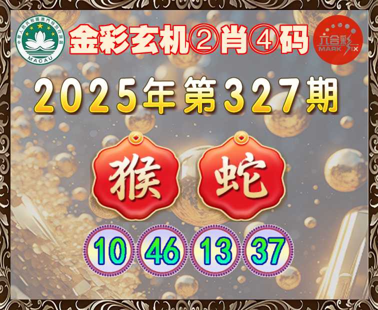 327期: 『金彩玄机』 ②肖④码【猴蛇】【10.46.13.37】开:蛇37准