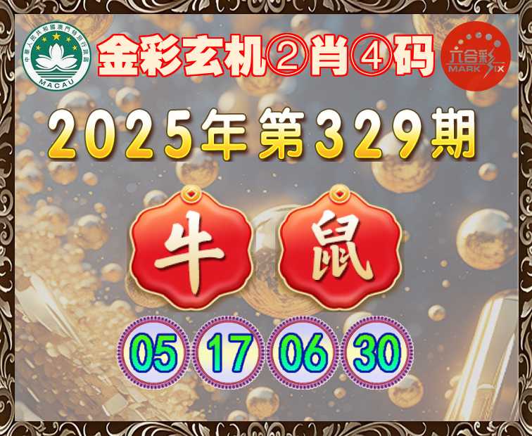 329期: 『金彩玄机』 ②肖④码【牛鼠】【05.17.06.30】开:牛17准