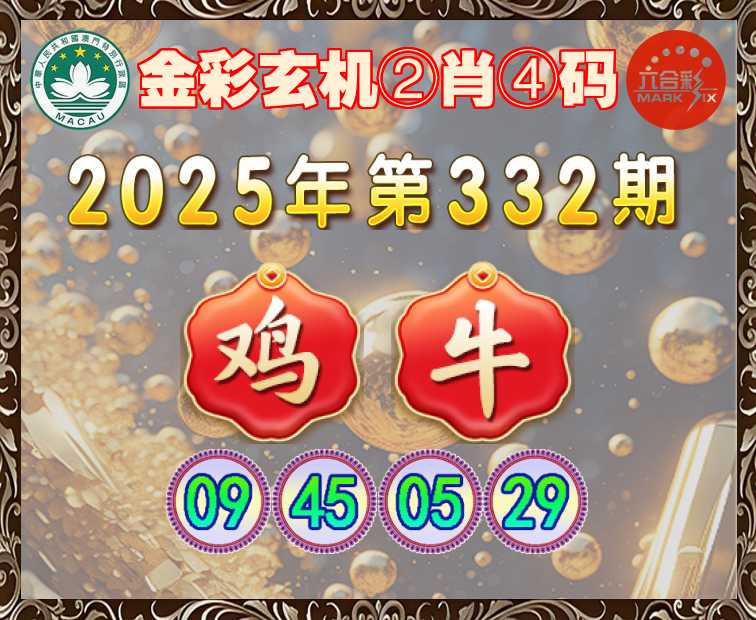 332期: 『金彩玄机』 ②肖④码【鸡牛】【09.45.05.29】开:龙26错