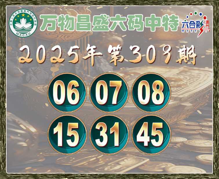309期:『万物昌盛』 六码中特【06.07.08.15.31.45】开:06准
