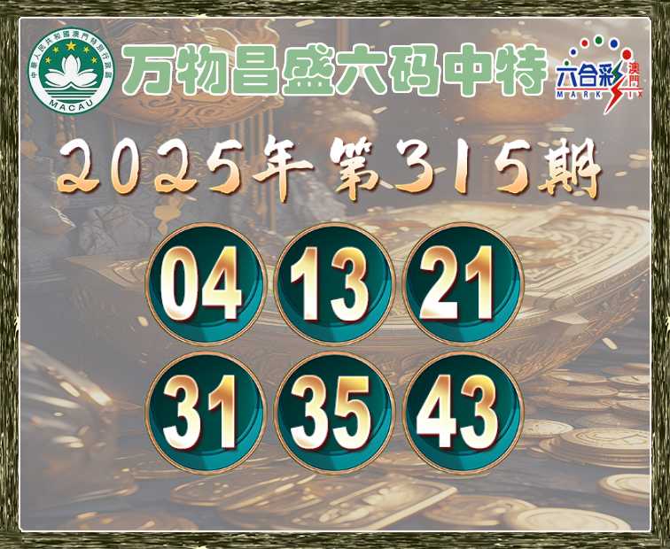 315期:『万物昌盛』 六码中特【04.13.21.31.35.43】开:04准