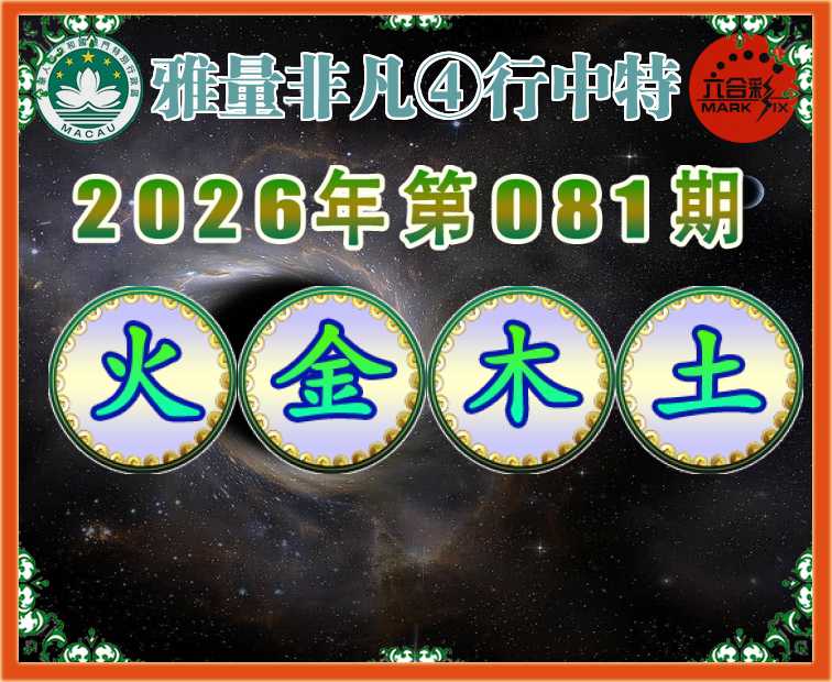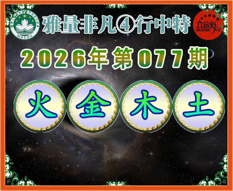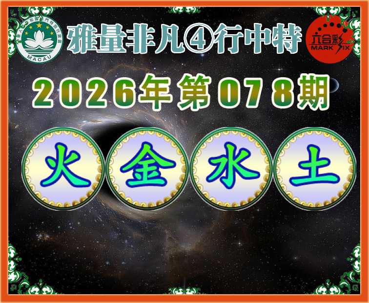 078期:『雅量非凡』 ④行中特【火.金.水.土】开:木46错