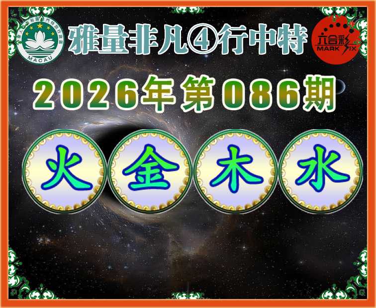 086期:『雅量非凡』 ④行中特【火.金.木.水】开:金12准