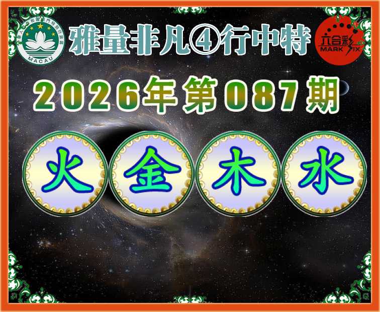 087期:『雅量非凡』 ④行中特【火.金.木.水】开:金26准