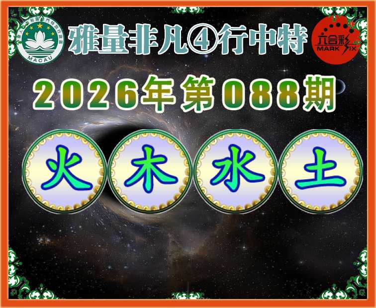 088期:『雅量非凡』 ④行中特【火.木.水.土】开:金27错