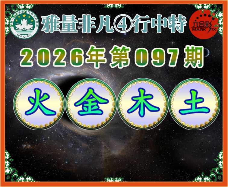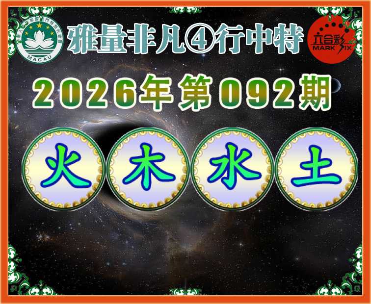 098期:『雅量非凡』 ④行中特【火.金.木.水】开:火17准