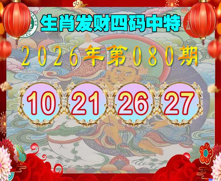080期:『生肖发财』 四码中特【10.21.26.27】开:03