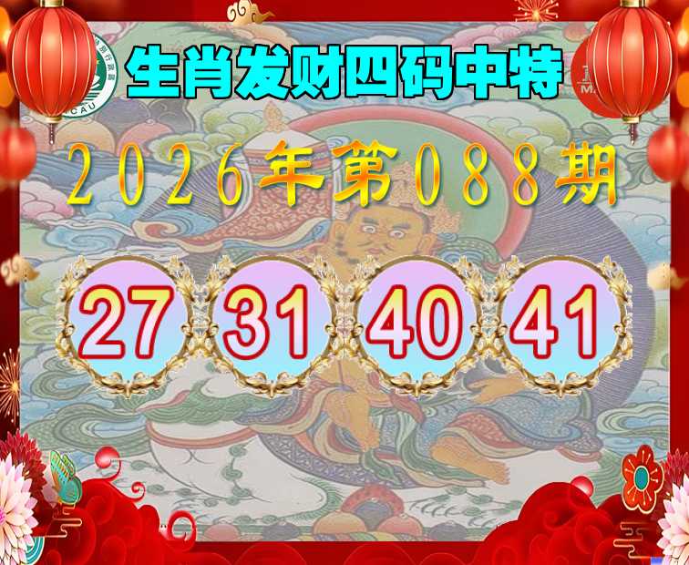 088期:『生肖发财』 四码中特27.31.40.41】开:27