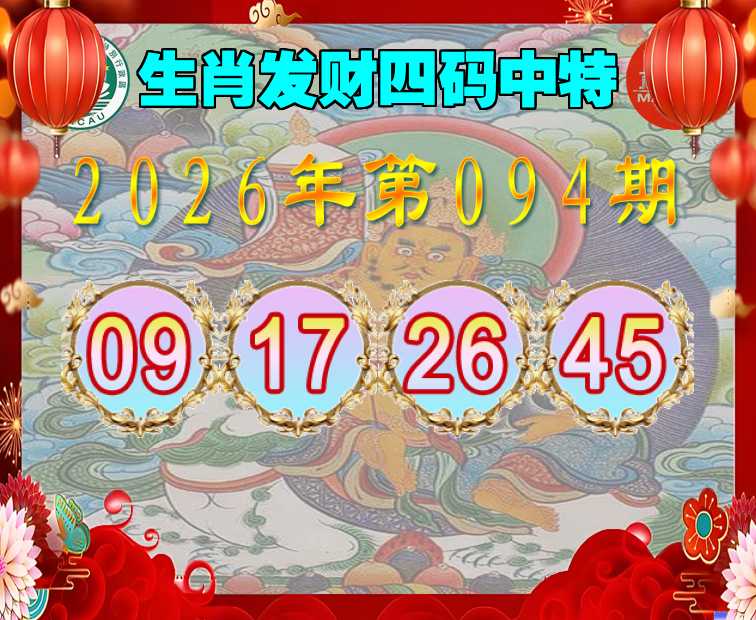 094期:『生肖发财』 四码中特【09.17.26.45】开:17