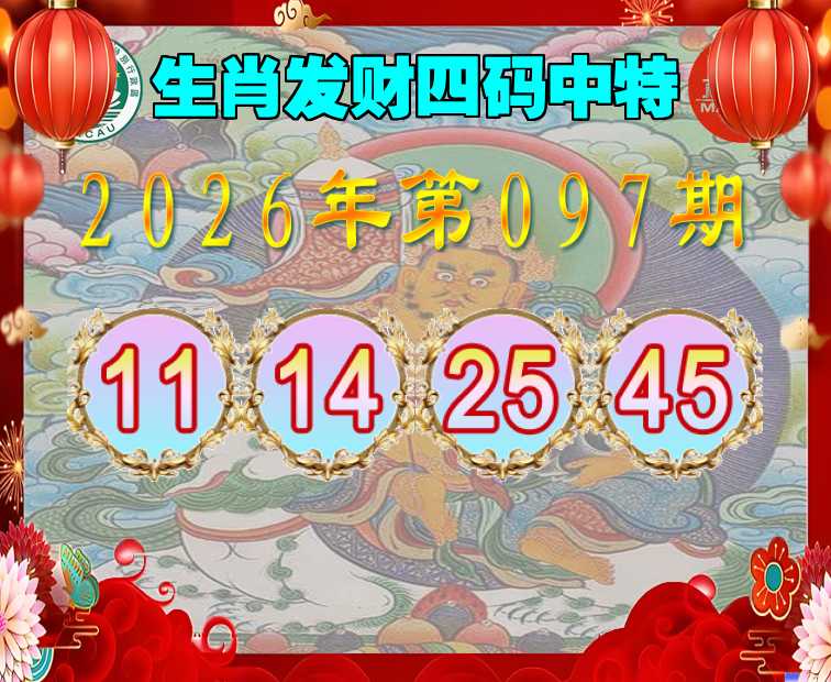 097期:『生肖发财』 四码中特11.14.25.45】开:11