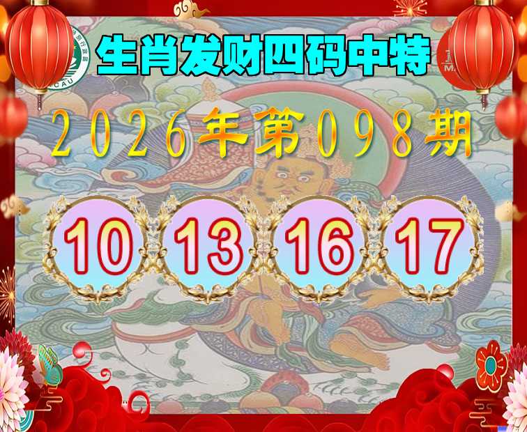 098期:『生肖发财』 四码中特【10.13.16.17】开:17