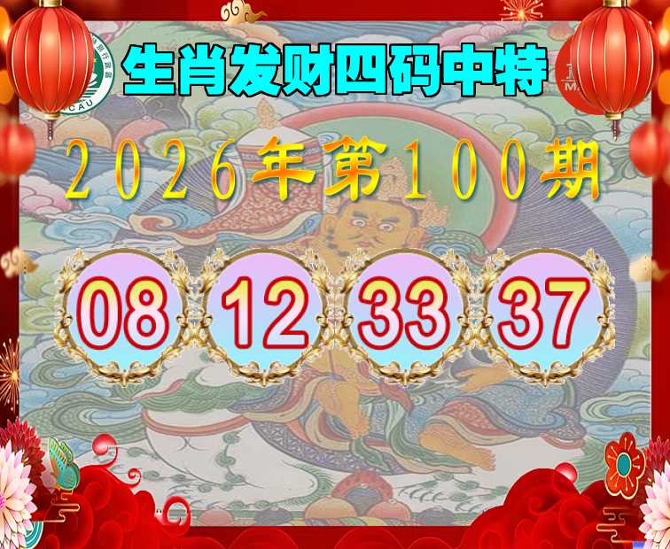 100期:『生肖发财』 四码中特【08.12.33.37】开:33