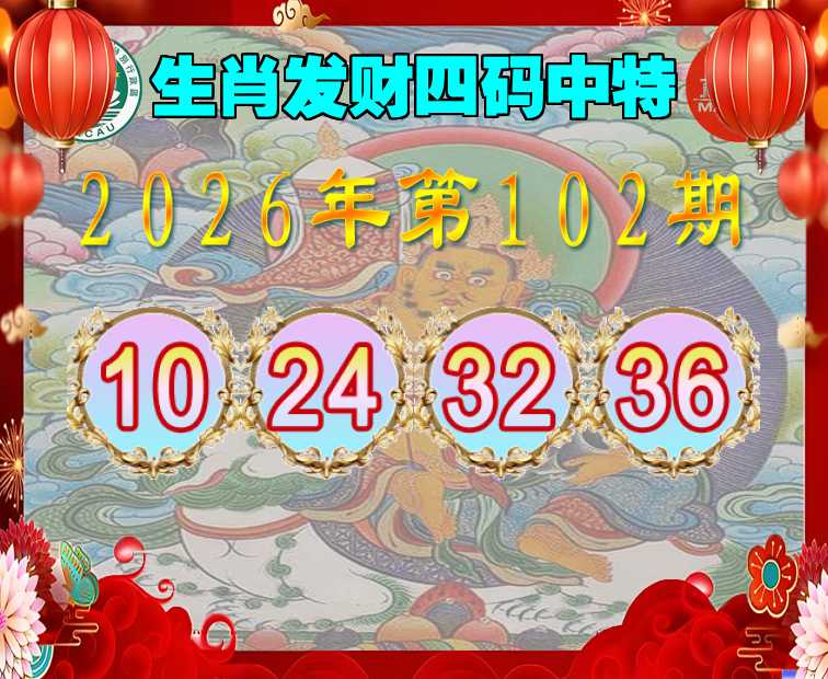 102期:『生肖发财』 四码中特【10.24.32.36】开:20