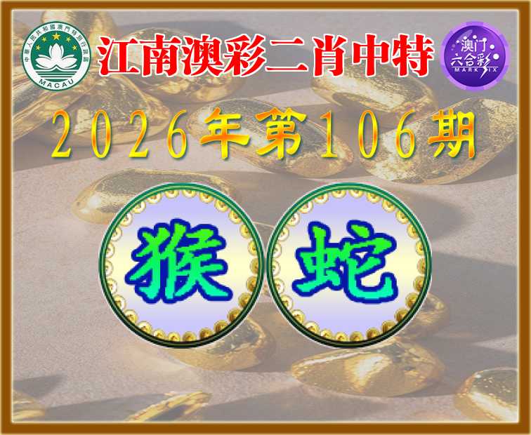 106期: 『江南澳彩』 二肖中特【猴.蛇】开:00准